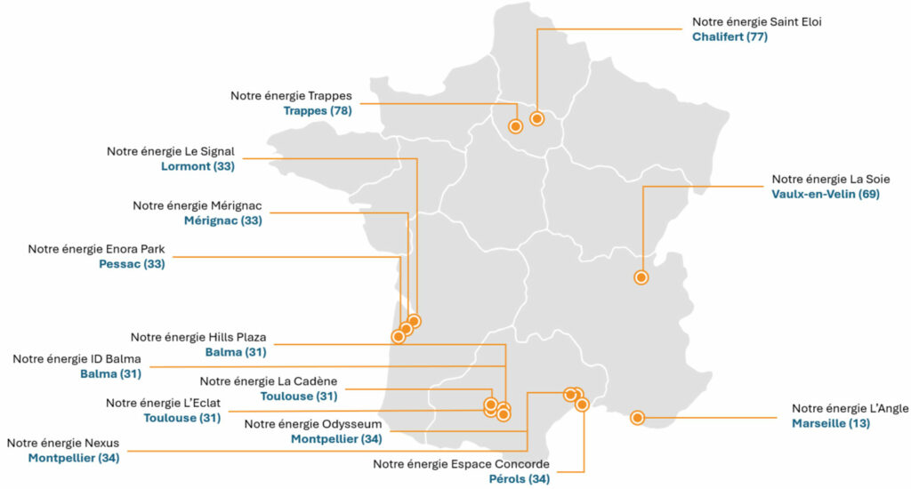 Fin 2025, la première phase de ce partenariat est bouclée et 14 centrales photovoltaïques sont désormais en service sur l’ensemble du territoire, représentant 16.000 m² de surfaces solarisées et 4 MWc de puissance installée. La production d’électricité de ces centrales sera de plus de 4 GWh par an, soit la consommation moyenne de plus de 1.000 foyers français.