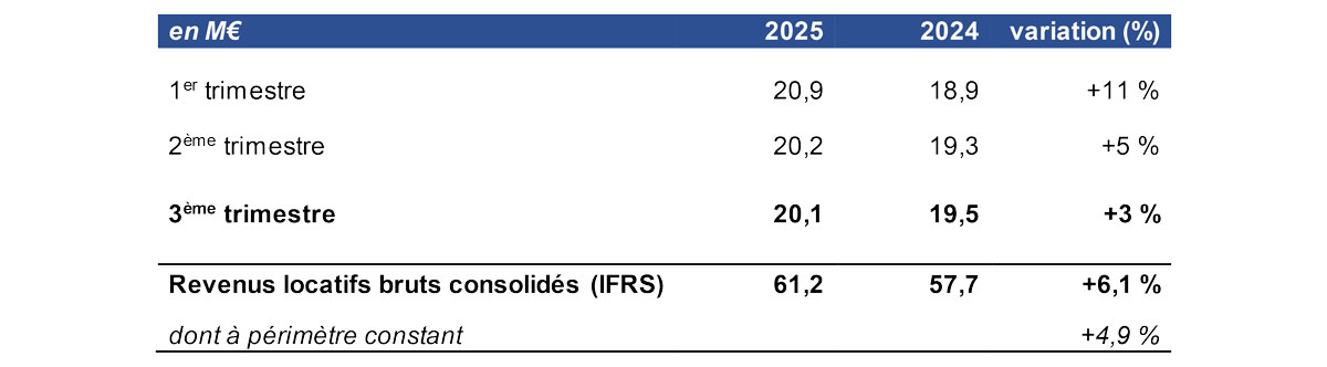 Revenus locatifs en hausse de 6,1% sur 9 mois