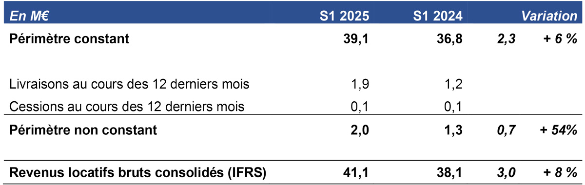 Croissance solide, parmi les plus dynamiques du marché : + 8 % de revenus locatifs au S1 2025