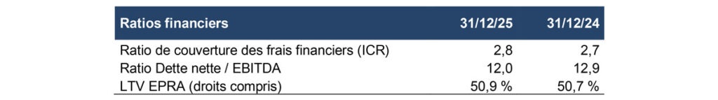 Le cash dégagé par les arbitrages réalisés en 2025 a été affecté au remboursement de la dette, et a permis d’entamer la baisse du LTV en fin d’année, après un pic atteint au 30 juin 2025.